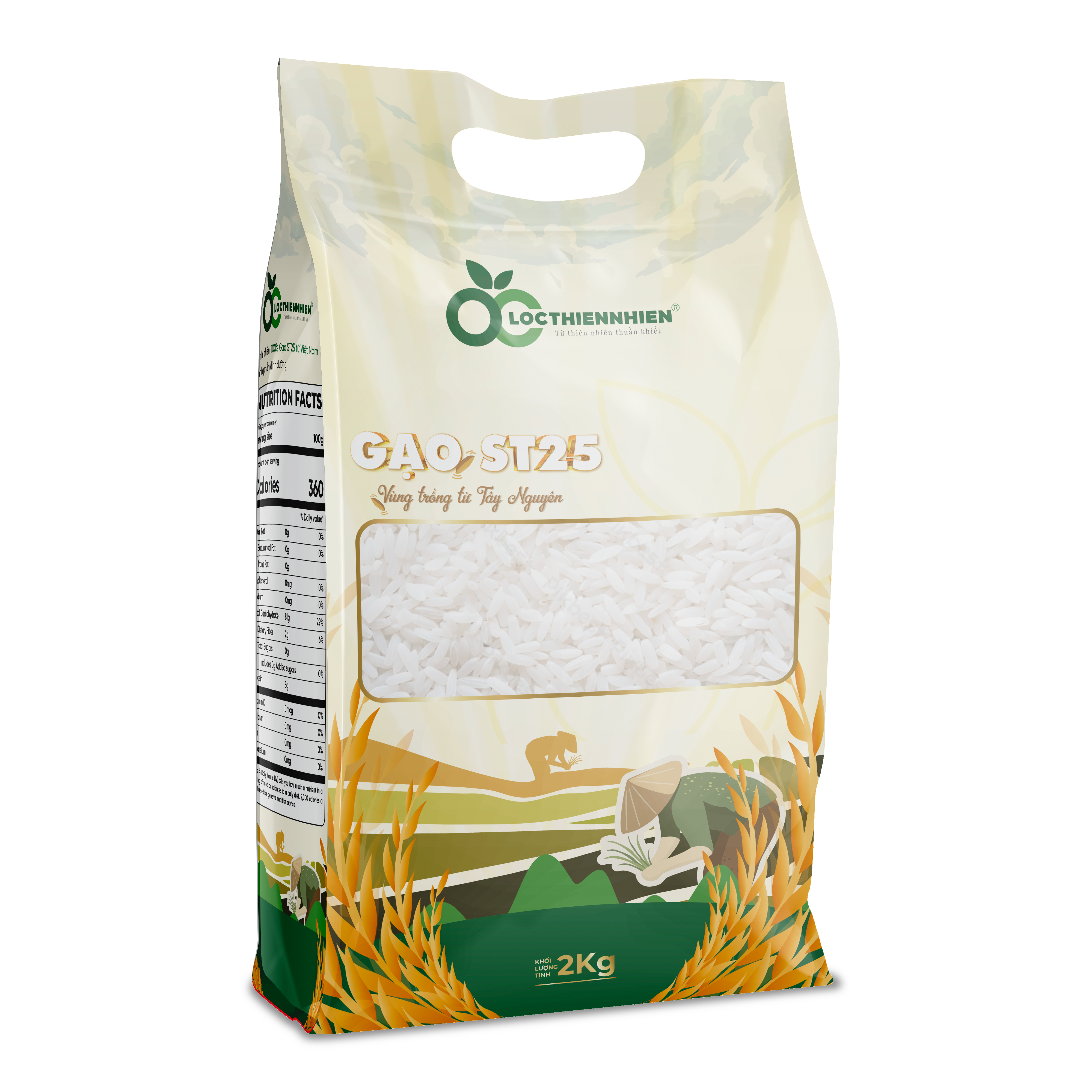 Gạo Thơm Dẻo ST25 Đặc Sản Tây Nguyên – Lộc Thiên Nhiên (Túi 2kg)